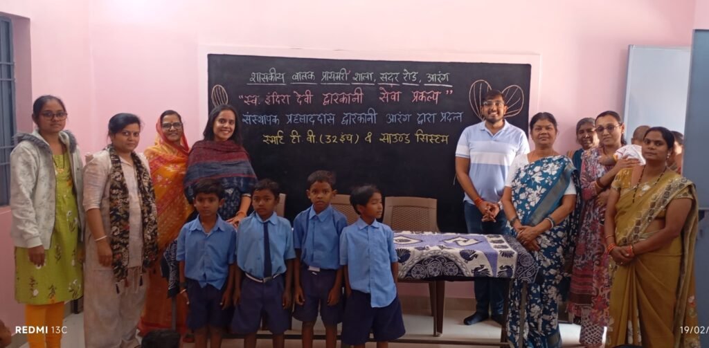 आरंग।स्थानीय शासकीय बालक प्राथमिक शाला, सदर रोड आरंग में बच्चों की पढ़ाई को आधुनिक और रुचिकर बनाने की दिशा में एक महत्वपूर्ण कदम उठाया गया है। स्व. श्रीमति इंदिरा द्वारकानी सेवा प्रकल्प के संस्थापक प्रहलाद दास द्वारकानी (सेवानिवृत्त प्राचार्य) के सौजन्य से शाला को स्मार्ट क्लास वर्क हेतु एक बड़ी एलईडी टीवी और साउंड सिस्टम भेंट किया गया है।इस अवसर पर द्वारकानी परिवार ने कहा कि आज के इस तकनीकी युग में सरकारी स्कूलों के बच्चे भी स्मार्ट पढ़ाई कर सके यही दान का भाव है । इस पुनीत कार्य हेतु शाला की प्रधान पाठिका जया वर्मा एवं स्टाफ सोनल मिश्रा,पवन कुमार साहू,केसरी ढीढी ,रोशनी प्रधान,पिंकी गुप्ता एवं बच्चों ने द्वारकानी परिवार का हृदय से आभार व्यक्त किया। मेडम वर्मा ने कहा कि इस आधुनिक उपकरण से बच्चों की सीखने की क्षमता बढ़ेगी और वे खेल-खेल में डिजिटल शिक्षा से जुड़ सकेंगे। द्वारकानी परिवार का यह सहयोग शाला के लिए अमूल्य है।इस अवसर पर श्रीमति शिवा, राम, कर्णीका द्वारकानी उपस्थित थे।