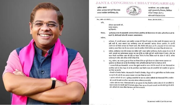 रायपुर – जनता कांग्रेस छत्तीसगढ़ (जे) के प्रदेश अध्यक्ष अमित जोगी ने प्रधानमंत्री नरेंद्र मोदी को पत्र लिखकर छत्तीसगढ़ में प्रधानमंत्री आवास योजना में बड़े पैमाने पर भ्रष्टाचार के गंभीर आरोप लगाए हैं। जोगी ने अपने पत्र में केंद्र सरकार से सीबीआई जांच की मांग की है। प्रधानमंत्री मोदी के छत्तीसगढ़ आगमन से ठीक पहले यह पत्र सामने आने से राज्य की सियासत में हलचल तेज हो गई है।