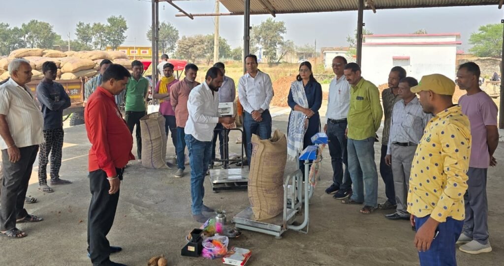 आरंग ब्लॉक में धान खरीदी प्रारंभ-समिति के अध्यक्षो तथा वरिष्ठ कृषकों द्वारा पूजा अर्चना कर की गई धान खरीदी की शुरुवात