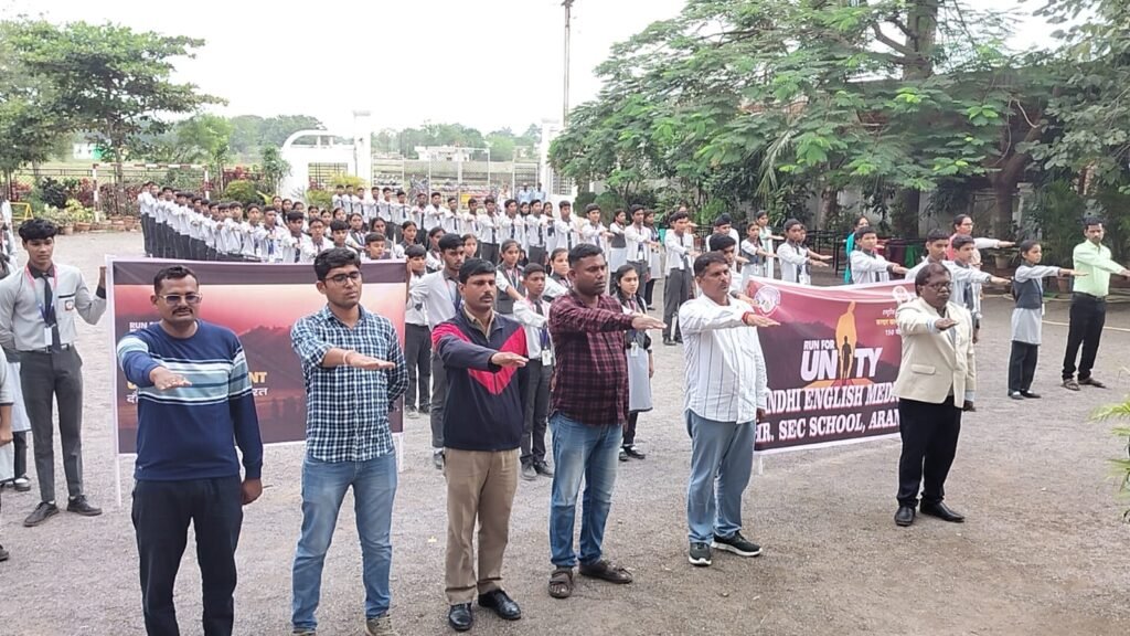 आरंग। गांधी इंग्लिश मीडियम हायर सेकेंडरी स्कूल में भारत के लौह पुरुष सरदार वल्लभभाई पटेल की 150वीं जयंती के उपलक्ष्य में राष्ट्रीय एकता दिवस मनाया गया। इस अवसर पर विद्यालय परिसर में ‘एकता दौड़’ एवं ’वृक्षारोपण’ कार्यक्रम का आयोजन किया गया, जिसमें छात्र-छात्राओं, शिक्षकों एवं आरंग पुलिस विभाग की सक्रिय भागीदारी रही।कार्यक्रम का शुभारंभ विद्यालय प्राचार्य हरेश कुमार दास द्वारा सरदार पटेल एवं छत्तीसगढ़ महतारी के चित्र पर माल्यार्पण एवं दीप प्रज्वलन के साथ हुआ। सभी ने सम्मिलित रूप से भारत देश की एकता और अखंडता, समृद्धि बनाए रखने हेतु शपथ ली। इसके पश्चात वृक्षारोपण किया गया, जिसमें पुलिस टीम एवं विद्यालय परिवार ने मिलकर नीम, पीपल, गुलमोहर जैसे छायादार एवं औषधीय पौधों का रोपण किया। वृक्षारोपण के माध्यम से पर्यावरण संरक्षण का संदेश दिया गया एवं हरियाली बढ़ाने का संकल्प लिया गया।