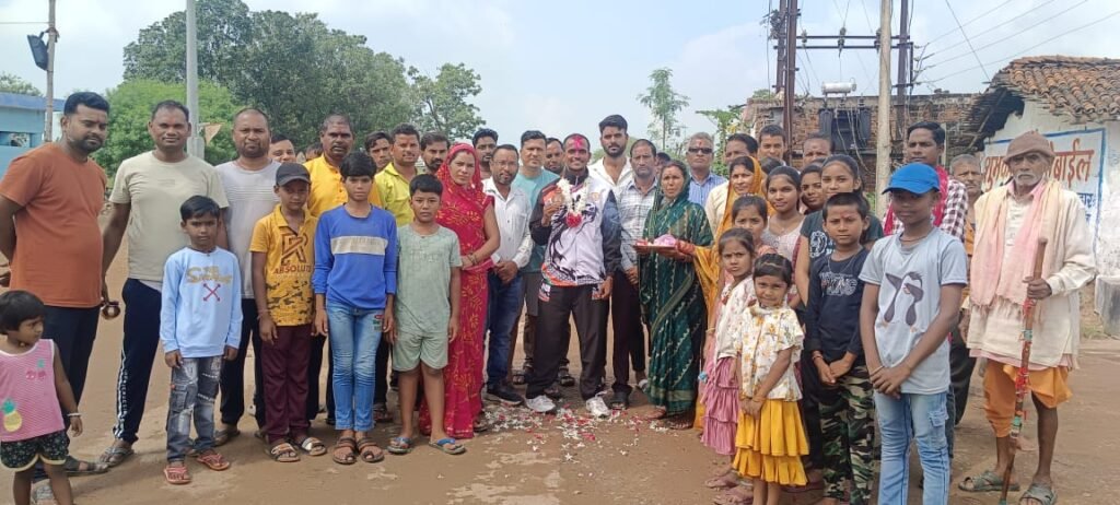 ग्राम खट्टी में कांस्य पदक विजेता तोरण यादव का भव्य स्वागत