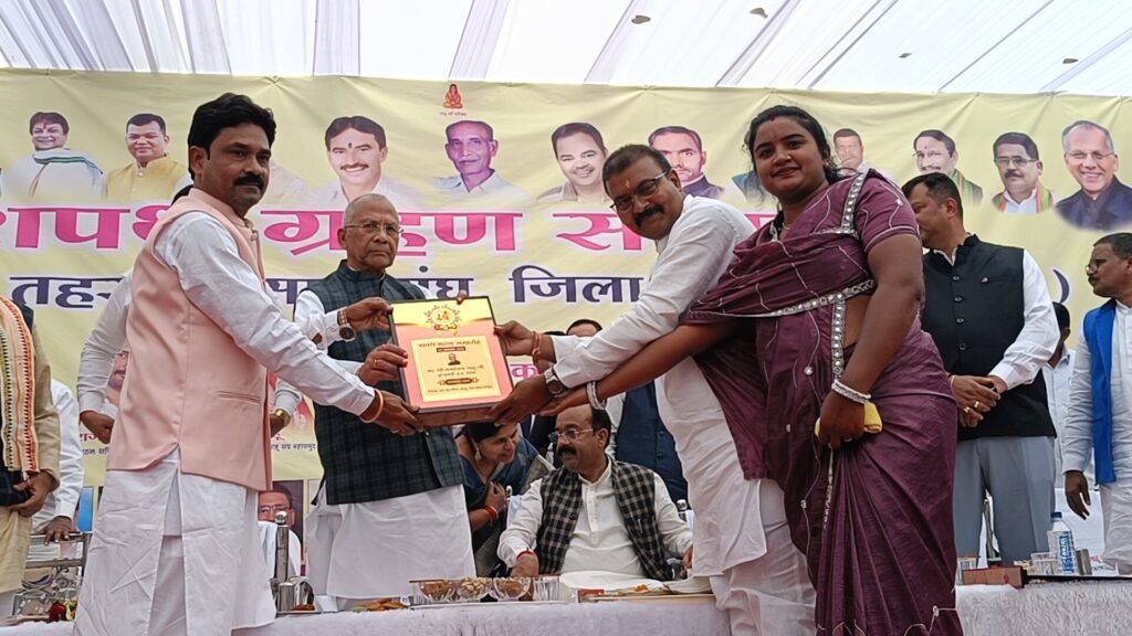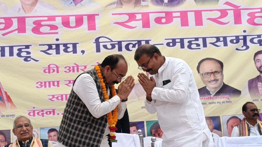 महासमुंद। जिला एवं तहसील साहू संघ महासमुंद का शपथ ग्रहण समारोह आज बीटीआई रोड स्थित कर्मा भवन में गरिमामय वातावरण में आयोजित किया गया। समारोह में प्रदेश के उपमुख्यमंत्री श्री अरुण साव मुख्य अतिथि के रूप में उपस्थित रहे।कार्यक्रम में अति विशिष्ट अतिथि के रूप में श्री ताम्रध्वज साहू, विशिष्ट अतिथि रायपुर ग्रामीण विधायक श्री मोतीलाल साहू, कसडोल विधायक श्री संदीप साहू, महासमुंद विधायक श्री योगेश्वर राजू सिन्हा, पूर्व केबिनेट मंत्री श्री ताम्रध्वज साहू, राज्य भंडार गृह निगम के अध्यक्ष एवं पूर्व सांसद श्री चंदूलाल साहू, श्री चुन्नीलाल साहू, प्रदेश अध्यक्ष डॉ. नीरेंद्र साहू, पूर्व प्रदेशाध्यक्ष श्री विपिन साहू, जिला साहू संघ अध्यक्ष श्री ढालूराम साहू, नगर पालिका अध्यक्ष श्री निखिलकांत साहू, श्री येतराम साहू सहित सामाजिक पदाधिकारी एवं समाज के प्रतिनिधि बड़ी संख्या में उपस्थित रहे।