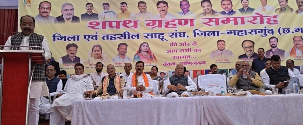 जिला एवं तहसील साहू संघ महासमुंद का शपथ ग्रहण समारोह संपन्न।उपमुख्यमंत्री श्री अरुण साव शामिल हुए। उपमुख्यमंत्री श्री साव ने कर्मा भवन में शेड निर्माण के लिए 25 लाख रुपये की घोषणा