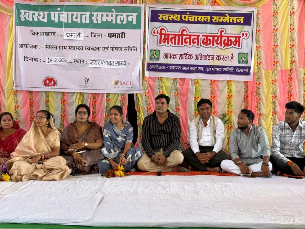 धमतरी/आमदी,19 फरवरी 2026। नगर पंचायत आमदी में मितानिन बहनों द्वारा स्वस्थ पंचायत सम्मेलन कार्यक्रम का आयोजन किया गया, कार्यक्रम की अध्यक्षता जिला पंचायत अध्यक्ष अरुण सार्वा ने की, इस अवसर पर स्वास्थ्य विभाग के अधिकारियों को आमंत्रित कर क्षेत्र में स्वास्थ्य संबंधी कमियों पर चर्चा की गई तथा आवश्यक जानकारी साझा की गई।
