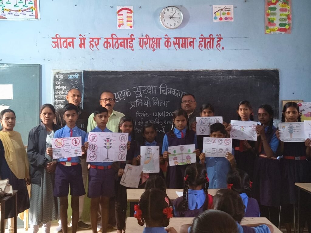 आरंग | शासकीय पूर्व माध्यमिक एवं प्राथमिक शाला गुखेरा में सोमवार को उत्साह और ज्ञान का अनूठा संगम देखने को मिला। अवसर था ‘सड़क सुरक्षा 2026 और ‘स्वामी विवेकानंद जयंती’ का, जिसे विद्यालय के छात्र-छात्राओं ने अपनी तूलिका और रंगों के माध्यम से यादगार बना दिया।विद्यालय में आयोजित चित्रकला प्रतियोगिता में प्राथमिक और मिडिल स्कूल के विद्यार्थियों ने बढ़-चढ़कर हिस्सा लिया। बच्चों की कल्पनाशीलता उनके चित्रों में साफ झलक रही थी।विद्यार्थियों ने ट्रैफिक सिग्नल, हेलमेट ,जेब्रा क्रॉसिंग, रोड सेफ्टी, दिशा सूचक और स्पीड ब्रेकर के सटीक चित्र बनाकर यातायात नियमों के पालन का संदेश दिया।वहीं दूसरी ओर, स्वामी विवेकानंद के ओजस्वी व्यक्तित्व, अन्य महापुरुषों और राष्ट्रीय प्रतीक चिन्हों के रेखाचित्रों के माध्यम से बच्चों ने अपनी कलात्मक प्रतिभा का प्रदर्शन किया।प्रतियोगिता के दौरान शिक्षकों ने विद्यार्थियों को सड़क सुरक्षा की बारीकियों से अवगत कराया। शिक्षकों ने उदाहरण देते हुए समझाया कि सड़क पर बरती गई एक छोटी सी सावधानी कैसे बड़े हादसों को टाल सकती है। “दुर्घटना से देर भली” के मूलमंत्र के साथ बच्चों को हेलमेट पहनने, सीट बेल्ट लगाने और यातायात संकेतों को समझने की प्रेरणा दी गई।स्वामी विवेकानंद की जयंती के उपलक्ष्य में उनके जीवन वृत्त पर प्रकाश डालते हुए शिक्षकों ने बच्चों को उनके दिखाए मार्ग पर चलने के लिए प्रेरित किया।इस अवसर पर सरपंच प्रतिनिधि पुरुषोत्तम सोनवानी,प्रधान पाठक प्राथमिक अरविंद वैष्णव, शिक्षक गण रामनारायण कन्नौजे, विमला चौहान,घनश्याम साहू, नोहर लाल यादव,फातिमा जांगड़े की सहभागिता रही।