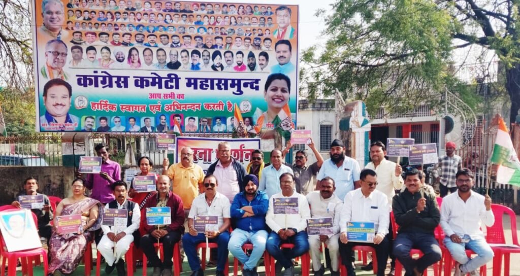 प्रदेश कांग्रेस केनिर्देशानुसार छत्तीसगढ़ को 1 साल में बेहाल करने वाली भाजपा सरकार के विरोध में महासमुंद कांग्रेस कमेटी के द्वारा मौन धरना प्रदर्शन