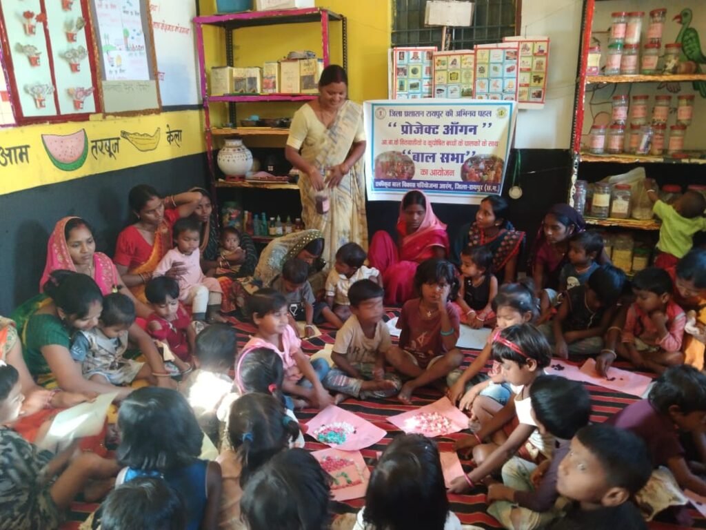 प्रोजेक्ट आँगन के तहत देवरी आंगनबाड़ी में बाल सभा व पालक सत्र सम्पन्न