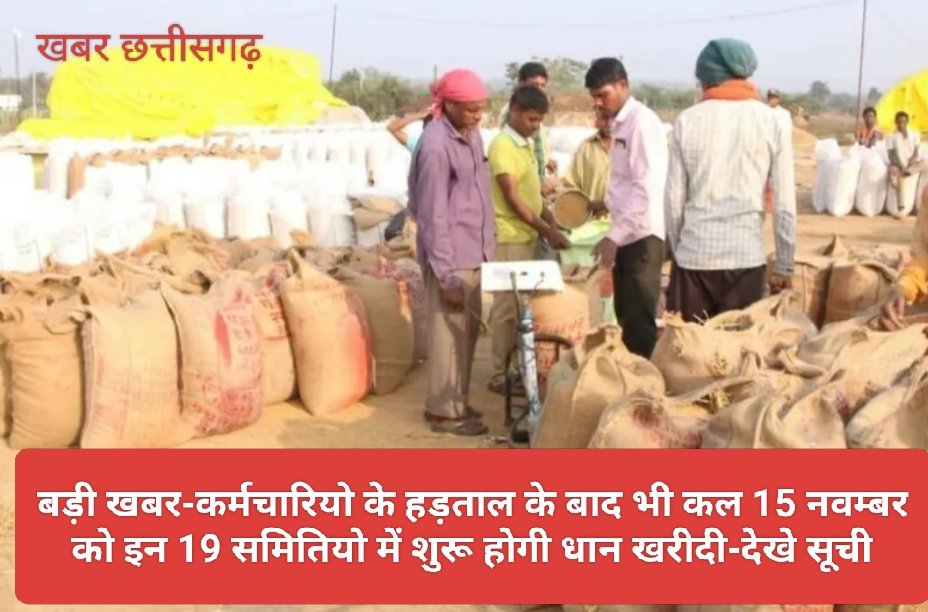 बड़ी खबर-कर्मचारियो के हड़ताल के बाद भी कल 15 नवम्बर को इन 19 समितियो में शुरू होगी धान खरीदी-देखे सूची
