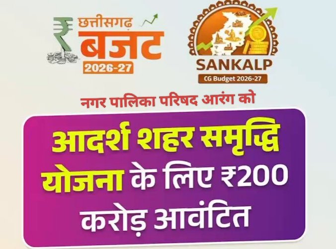 बड़ी सौगात-आदर्श शहर समृद्धि योजना में नगर पालिका आरंग शामिल-विकास के लिए मिलेंगे 200 करोड़