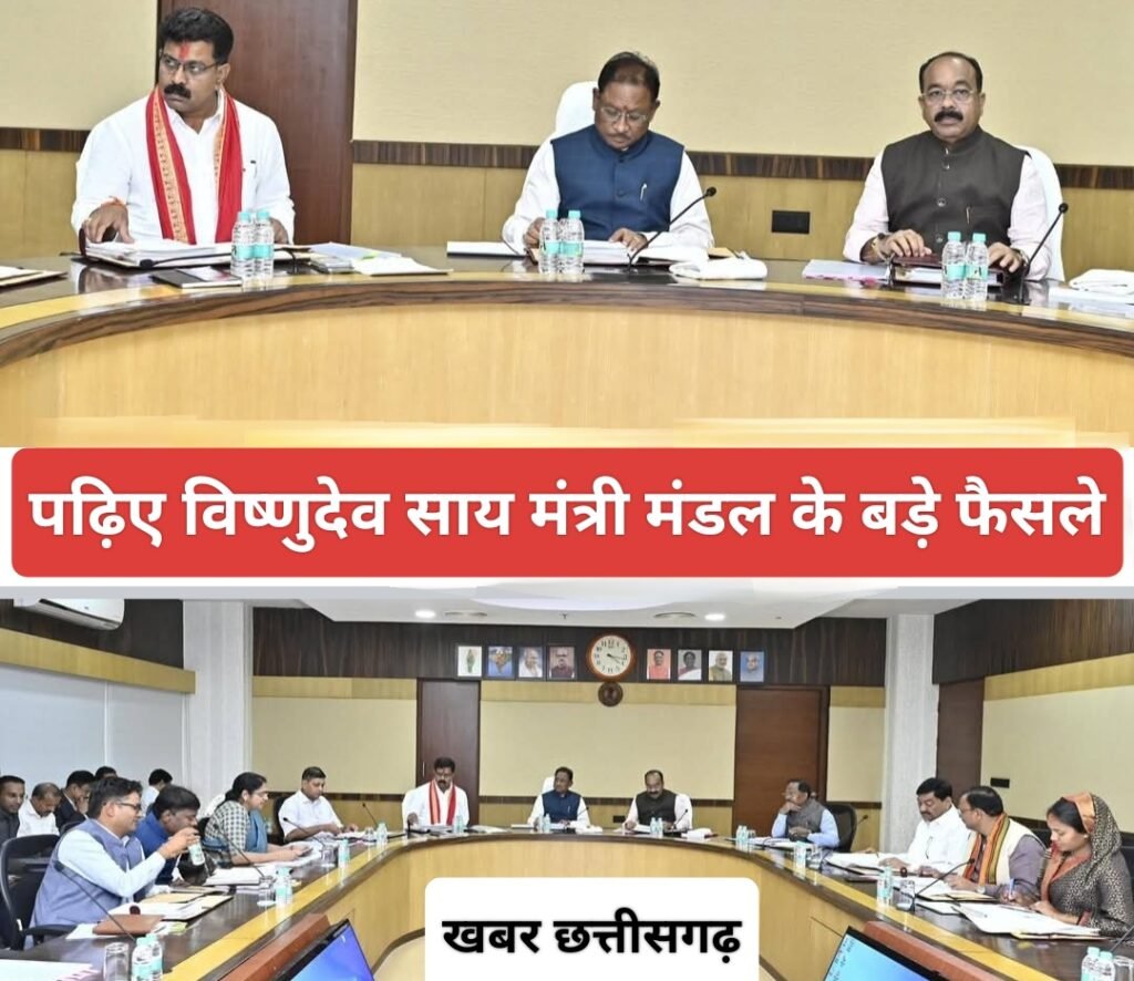 रायपुर। मुख्यमंत्री विष्णु देव साय की अध्यक्षता में आज यहां मंत्रालय महानदी भवन में आयोजित कैबिनेट की बैठक में अनेक महत्वपूर्ण निर्णय लिए गए………