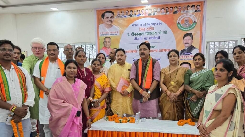आरंग। भारतीय जनता पार्टी जिला रायपुर ग्रामीण के तत्वावधान में विगत दिनो सद्भावना भवन, आरंग में पं. दीनदयाल उपाध्याय जी की जीवनी पर संगोष्ठी एवं जिला कार्यशाला का सफल आयोजन किया गया। यह आयोजन पार्टी कार्यकर्ताओं में वैचारिक मार्गदर्शन और संगठनात्मक मजबूती के उद्देश्य से किया गया था। साथ ही मंडल स्तर पर प्रदेश एवं जिला के निर्देश पर मंडल कार्यशालाओं का आयोजन दिनांक 30 सितंबर तक पूर्ण करने निर्देशित किया गया । आरंग मे आयोजित कार्यक्रम के मुख्य अतिथि के रूप में प्रदेश के वरिष्ठ नेता एवं पूर्व मंत्री अजय चंद्राकर एवं विशेष अतिथि के रूप में छत्तीसगढ़ गृह निर्माण मंडल के अध्यक्ष अनुराग सिंह देव एवं जिलाध्यक्ष श्याम नारंग की अध्यक्षता में संपन्न हुआ। कार्यक्रम का शुभारंभ दीप प्रज्वलन और पं. दीनदयाल उपाध्याय जी के चित्र पर पुष्पांजलि अर्पित कर किया गया।संगोष्ठी में मुख्य वक्ता कुरूद विधायक वरिष्ठ भाजपा नेता अजय चंद्राकर ने पं. दीनदयाल उपाध्याय जी के जीवन, उनके व्यक्तित्व एवं कृतित्व पर विस्तार से चर्चा की। विशेष रूप से उनके एकात्म मानववाद के सिद्धांत और अंत्योदय की भावना पर प्रकाश डालते हुए उन्होने कहा कि पं.दीनदयाल जी के विचार आज भी उतने ही प्रासंगिक हैं जितने उनके जीवनकाल में थे। उन्होंने सामाजिक समरसता, अंतिम पंक्ति में खड़े व्यक्ति तक विकास पहुँचाने और राष्ट्रहित को सर्वोपरि मानने की जिस सोच का प्रतिपादन किया, वही आज देश के विकास का मार्गदर्शक है। उपस्थित पदाधिकारियों और कार्यकर्ताओं ने संकल्प लिया कि हम सभी उनके आदर्शों पर चलकर समाज और राष्ट्र निर्माण में अपनी भूमिका निभाएँगे।संगोष्ठी के पश्चात जिला कार्यशाला का आयोजन किया गया। मुख्य वक्ता छग गृह मंडल के अध्यक्ष अनुराग सिंहदेव ने “आत्मनिर्भर भारत संकल्प अभियान” और “नेक्स्ट जेन GST रिफॉर्म्स” विषय पर विस्तारपूर्वक जानकारी दी। उन्होने कहा कि आत्मनिर्भर भारत अभियान केवल नारा नहीं बल्कि भारत को आर्थिक रूप से सशक्त बनाने का ठोस प्रयास है, जिसमें स्थानीय उद्योगों, छोटे व्यापारियों और ग्रामीण अर्थव्यवस्था को नई ऊर्जा देने का संकल्प निहित है। वहीं, GST सुधारों को लेकर विशेषज्ञों ने बताया कि आने वाले समय में यह कर प्रणाली को और अधिक सरल, पारदर्शी एवं जनहितैषी बनाएंगे। इससे व्यापारियों, उद्योगपतियों और आम जनता सभी को राहत मिलेगी।इस अवसर पर जिला संगठन की गतिविधियों को गति देने और आगामी कार्यक्रमों की रूपरेखा पर भी चर्चा की गई। संगठन को मजबूत बनाने, बूथ स्तर तक पार्टी की पहुँच बढ़ाने और आम जनता के साथ सतत संवाद कायम रखने पर विशेष जोर दिया गया, सभी मंडल प्रभारियो द्वारा अपने अपने मंडलो मे कार्यशालाओं का सफलतापू
