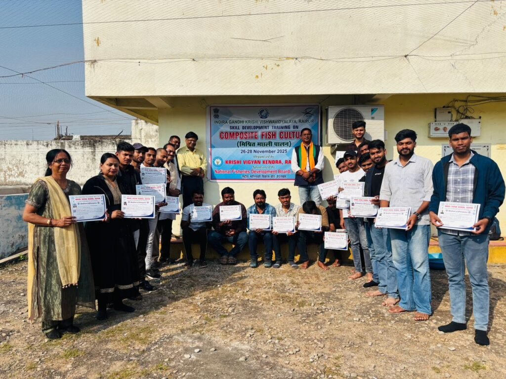 सभी अपने प्रशिक्षण का लाभ लेते हुए इस दिशा में जरूर आगे बढ़े। इसके पूर्व उद्घाटन समारोह में मुख्य अतिथि के रूप में डॉ. अजय कुमार वर्मा, अधिष्ठाता, स्वामी विवेकानंद कॉलेज ऑफ एग्रीकल्चरल इंजीनियरिंग एवं टेक्नोलॉजी, इं.गां.कृ.वि. उपस्थित थे. इस कार्यक्रम में कृषि विज्ञान केन्द्र, रायपुर के वरिष्ठ वैज्ञानिक एवं प्रमुख डॉ. गौतम रॉय ने अपने उदबोधन में कृषि विज्ञान केन्द्र, रायपुर में चल रही मछली पालन की विभिन्न गतिविधियों के बारे में विस्तार से अवगत कराया. प्रशिक्षण प्रभारी डॉ. एस. सासमल ने अपने उद्बोधन में तीन दिवसीय प्रशिक्षण की रूपरेखा की विस्तृत जानकारी दी. इस दौरान ‘मिश्रित मत्स्य पालन पद्धति’ विषय पर तैयार तकनीकी बुलेटिन का विमोचन किया गया।मुख्य अतिथि डॉ. वर्मा ने कहा कि सिर्फ भारत से ही नही बल्कि विदेशों से भी प्रशिक्षणार्थी इंदिरा गांधी कृषि विश्वविद्यालय, कृषि विज्ञान केन्द्र, रायपुर में प्रशिक्षण लेने के लिए आए हैं, यह गर्व की बात है. इस प्रशिक्षण के उद्घाटन सत्र के बाद दो सत्रों में मिश्रित मत्स्य पालन पद्धति विषय पर डॉ. एस. आर गौर, प्राध्यापक एवं तोषण कुमार ठाकुर, ने विस्तृत जानकारी दी।प्रशिक्षण के दूसरे दिन डॉ. एस. सासमल एवं डॉ. अंकित ठाकुर ने मिश्रित मछली पालन के प्रायोगिक पहलुओं पर प्रक्षेत्र प्रशिक्षण दिया. इस कड़ी में तालाबों का चयन, मछली बीज संचयन, खाद प्रबंधन, प्राकृतिक भोजन उत्पादन आदि को प्रायोगिक रूप से प्रदर्शित किया गया. प्रशिक्षण के अंतिम दिवस में अमित वर्मा, मत्स्य निरीक्षक, मछली पालन विभाग,रायपुर ने मछली पालन में राज्य सरकार तथा केन्द्रीय सरकार के सब्सिडी स्कीमस् के बारे में विस्तृत जानकारी दी साथ ही साथ किसान कैसे सब्सिडी का लाभ उठा सकते है उसके बारें में भी जानकारी दी. डॉ. एस. सासमल ने मिश्रित मछली पालन पद्धति के शुद्ध आय-व्यय के बारे में जानकारी दी एवं समन्वित मछली पालन करके आपने आय को कैसे दोगुना किया जा सकता है इससे अवगत करवाया डॉ. एस. सासमल, प्रशिक्षण प्रभारी ने तीन दिवसीय प्रशिक्षण के गतिविधियों के बारे में विस्तृत जानकारी दी तथा प्रशिक्षणार्थियों ने अपने अनुभव सभी के साथ साझा किए।