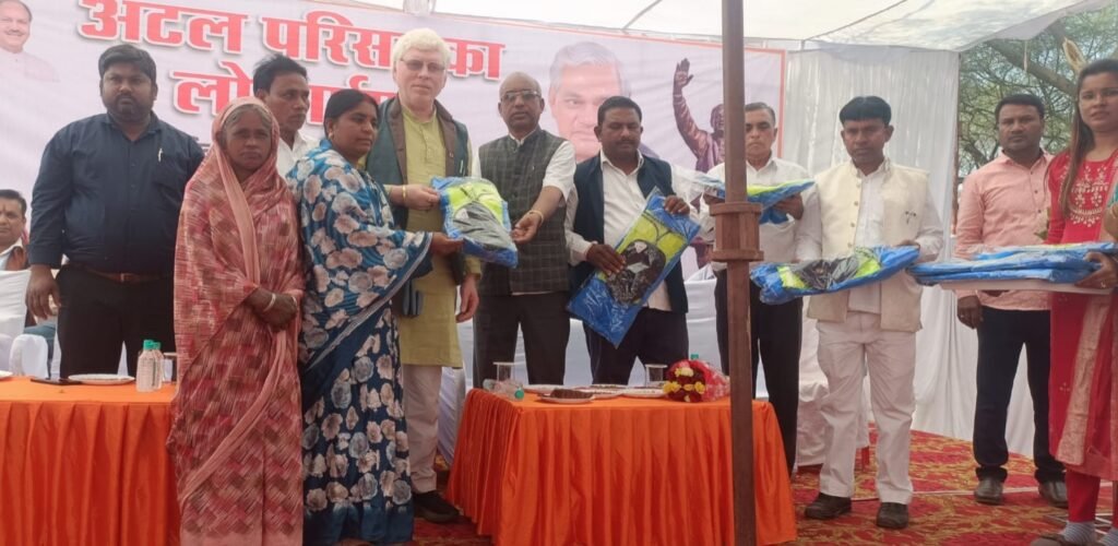 आरंग।छत्तीसगढ़ राज्य के निर्माता भारत रत्न स्व. अटल बिहारी वाजपेयी के जन्मजयंती के अवसर पर गुरुवार को आरंग में नवनिर्मित अटल परिसर का भव्य लोकार्पण समारोह आयोजित किया गया। छत्तीसगढ़ राज्य के निर्माता अटलजी की स्मृतियों को चिरस्थायी रखने उनके जन्म शताब्दी वर्ष में पिछले वर्ष नगरीय निकायों में अटल परिसरों के निर्माण हेतु भूमिपूजन किया गया था।अटलजी के जन्म शताब्दी वर्ष को छत्तीसगढ़ सरकार अटल निर्माण वर्ष के रूप में मना रही है। छत्तीसगढ़ राज्य के निर्माण व इसके विकास में उनके योगदान को रेखांकित करने तथा उनकी स्मृतियों को चिरस्थायी बनाने उनके जन्म शताब्दी वर्ष में राज्य के हर नगरीय निकाय में अटल परिसर का निर्माण किया गया है।नगर पालिका परिषद आरंग के वार्ड क्रमांक 17 कलई तिगड्डा चौक के पास नवनिर्मित अटल परिसर का लोकार्पण कार्यक्रम आयोजित किया गया l नगर पालिका द्वारा राशि 30.00 लाख की लागत से निर्मित अटल परिसर का वर्चुअल लोकार्पण छत्तीसगढ़ प्रदेश के मुख्यमंत्री विष्णु देव साय के द्वारा किया गया l उक्त कार्यक्रम में वूमेन फॉर ट्री योजना के अंतर्गत नगर के तीन स्थानों में पौधों का देखभाल एवं संरक्षण तथा संवर्धन करने वाली महिला स्व सहायता समूह के कर्मचारियों को नगर पालिका परिषद आरंग के अध्यक्ष डॉ. संदीप जैन के मुख्य आतिथ्य में साड़ी एवं अन्य संबंधित सामग्रियों का किट प्रदान किया गया साथ ही प्रधानमंत्री आवास योजना 2.0 अंतर्गत लाभार्थी हितग्राहियों को आवास निर्माण की स्वीकृति पत्र भी आवंटित की गई l