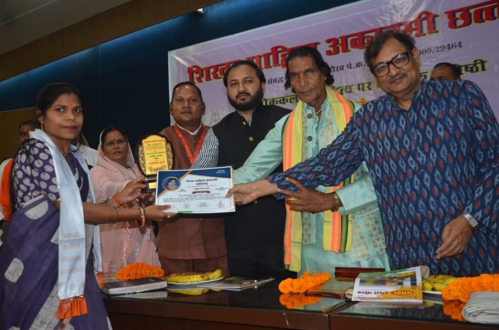 रायपुर। साहित्य के क्षेत्र में अलग-अलग श्रृंगारिक रचना में महत्वपूर्ण योगदान देने वाली श्रीमती धानी मानिकपुरी को छत्तीसगढ़ राष्ट्रीय शिखर सम्मान 2025 में मुख्य अतिथि माननीय महाराजा कमलचंद्र भंजदेव जी राजमहल जगदलपुर जिला बस्तर से सम्मानित किया है। शिखर साहित्य अकादमी छत्तीसगढ़ संबद्ध धरोहर हमारे गौरव के तत्वाधान में लोककला साहित्य पर संगोष्ठी एवं राष्ट्रीय सम्मान समारोह 1 सितंबर 2025 को वृंदावन सभा कच्छ सिविल लाइन रायपुर में आयोजित किया गया। कार्यक्रम में कलाकार, रचनाकार, शिक्षाविद्, चिकित्सक, मातृशक्ति, पत्रकार, कृषक एवं समाजसेवी को अलग-अलग क्षेत्रों में उपलब्धी हासिल करने पर सम्मानित किया गया।