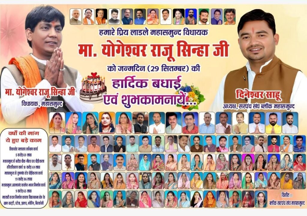 विधायक योगेश्वर राजू सिन्हा को देर शाम तक बधाई देने के लिए लोग पहुंचते रहें। विधायक योगेश्वर राजू सिन्हा ने सभी को धन्यवाद ज्ञापित करते हुए कहा कि वें सभी का स्नेह और आशीर्वाद पाकर काफी प्रफुल्लित हैं। इस अवसर पर विधायक योगेश्वर राजू सिन्हा ने जन्मदिन के अवसर पर आशीर्वाद देने और रुद्राभिषेक एवं पूजन में शामिल होने के लिए धन्यवाद ज्ञापित किया। उन्होंने कहा कि महादेव की कृपा एवं आप सभी के आशीर्वाद से मैं आज आपके क्षेत्र के प्रतिनिधि के रूप में कार्य कर रहा हूं। हमारी सरकार द्वारा संचालित योजनाओं के क्रियान्वयन के साथ-साथ मैं अन्य विकास कार्यों के लिए भी सदा तत्पर हूं। अपनी पूरी क्षमता के साथ आप सभी की सेवा में लगा हुआ हूं। इसमें आप सभी का भी भरपूर सहयोग एवं आशीर्वाद मिलता है। इसके लिए मैं आप सभी का हृदय से आभारी हूं। हम सब मिलकर विकसित छत्तीसगढ़ के साथ विकसित महासमुंद की गाथा भी लिखेंगे।