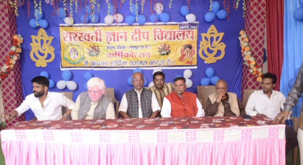 आरंग । सरस्वती ज्ञान दीप विद्यालय आरंग का शालेय वार्षिक उत्सव मनाया गया। कार्यक्रम के मुख्य अतिथि ध्रुव कुमार मिर्धा राज्य मंत्री राज्य मंत्री दर्जा प्राप्त एवं अध्यक्ष चर्म शिल्पकार विकास बोर्ड छत्तीसगढ़ रहे। कार्यक्रम की अध्यक्षता डॉ संदीप जैन अध्यक्ष नगर पालिका परिषद आरंग ने किया। विशिष्ट अतिथि के के भारद्वाज वरिष्ठ भाजपा नेता आरंग, चंद्रशेखर साहू वरिष्ठ भाजपा नेता आरंग, पुष्कर साहू पार्षद वार्ड नंबर 09 ,वीरेंद्र गोलू कंड़रा पार्षद, तेज राम यादव कोशल साहित्य कला मंचा रहे।कार्यक्रम का शुभारंभ मां सरस्वती की पूजा अर्चना से हुआ अतिथियों के स्वागत में स्वागत गीत एवं नृत्य प्रस्तुत किए गए स्वागत के पश्चात शाला प्रतिवेदन प्रधान पाठिका देवकुमारी यादव ने प्रस्तुत करते हुए कहा हमारी शाला में बच्चों के सर्वांगीण विकास के लिए कार्यक्रम किए जाते हैं। पुष्कर साहू ने अपने उदबोधनमें कहा इस शाला में आकर अपनी संस्कृति का जीवन एहसास होता है अपनेपन का एहसास होता है। के के भारद्वाज जी ने अपने उद्बोधन में कहा यह शाला छोटी जरूर है लेकिन कार्यक्रम बड़े स्कूलों के समान हैं इस शाला के लिए जो भी काम हम कर सकें करेंगे। शाला के समस्त शिक्षकों प्रबंधन समितियां को बधाई । डॉ संदीप जैन अध्यक्ष ने कहा की संस्कृति की रक्षा करने का काम यह स्कूल कर रही है यहां शंकर बजरंगबली इत्यादि की पूजा स्तोत्र वाचन सराहनीय है । मुख्य अतिथि ध्रुव कुमार मिर्धा ने आसंदी से कहा हमेशा ही यह शाला हर विधा में पूर्ण लगती है ऐसी ही शाला की आवश्यकता है जो यह शाला पूरा करती है हम इस शाला के उज्जवल भविष्य की कामना करते हैं ।