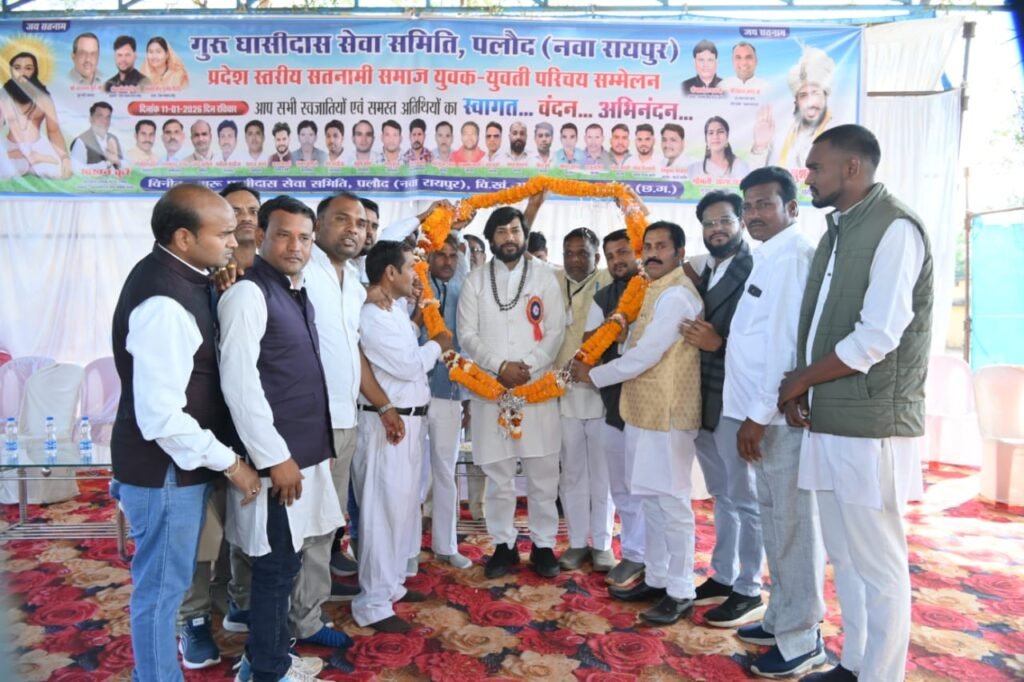 आरंग। नया रायपुर के प्रमुख ग्राम पंचायत पलौद में रविवार 11 जनवरी को गुरुघासीदास सेवा समिति के तत्वावधान में सतनामी समाज का तृतीय वर्ष युवक युवती परिचय सम्मेलन भव्य एवं गरिमामय वातावरण में सफलतापूर्वक संपन्न हुआ। सम्मेलन में प्रदेशभर से आए युवक युवतियों एवं अभिभावकों की उत्साहपूर्ण सहभागिता देखने को मिली।कार्यक्रम का शुभारंभ छत्तीसगढ़ शासन के कैबिनेट मंत्री गुरु खुशवंत साहेब द्वारा दीप प्रज्ज्वलन एवं पूजा-अर्चना के साथ किया गया। इस अवसर पर समाज के प्रबुद्धजन, जनप्रतिनिधि एवं बड़ी संख्या में ग्रामीणजन उपस्थित रहे।सम्मेलन में विशेष अतिथि के रूप में भीनुसुजीत घिदौड़े (जिला पंचायत सदस्य), वीरेन्द्र (गोलू) हिरवानी (जनपद पंचायत सदस्य, आरंग), हेमकुमार मार्कण्डे (सरपंच, पलौद) तथा नारायण प्रसाद कुर्रे उपस्थित रहे।समिति अध्यक्ष माखनलाल कुर्रे ने बताया कि इस वर्ष सम्मेलन में पूरे प्रदेश से 623 प्रतिभागी शामिल हुए। युवक युवतियों ने आत्मविश्वास के साथ मंच से अपना परिचय दिया। सम्मेलन के दौरान 12 जोड़ों का आपसी सहमति से रिश्ता तय होना, आयोजन की बड़ी उपलब्धि रही। यह सम्मेलन लगातार तीसरे वर्ष आयोजित होकर सामाजिक समरसता का सशक्त उदाहरण बन रहा है।इस अवसर कैबिनेट मंत्री गुरु खुशवंत साहेब ने अपने उद्बोधन में कहा कि सतनामी समाज ने सदैव सामाजिक एकता, समता और सेवा के मूल्यों को जीवित रखा है। युवक युवती परिचय सम्मेलन जैसी पहलें समाज को नई दिशा देती हैं, जहां परंपरा और आधुनिक सोच का सुंदर समन्वय दिखाई देता है।आज के समय में विवाह केवल दो व्यक्तियों का नहीं, बल्कि दो परिवारों और दो संस्कारों का मिलन है। ऐसे मंच युवाओं को पारदर्शी, गरिमामय और सुरक्षित वातावरण में जीवनसाथी चुनने का अवसर देते हैं, जो समाज के उज्ज्वल भविष्य के लिए आवश्यक है।राज्य सरकार समाज के हर वर्ग के सर्वांगीण विकास के लिए प्रतिबद्ध है। शिक्षा, रोजगार, सामाजिक सशक्तिकरण और सांस्कृतिक संरक्षण के माध्यम से हम युवाओं को आगे बढ़ने के अवसर दे रहे हैं। गुरु घासीदास जी के सत्य, अहिंसा और मानवता के संदेश को आत्मसात कर हम एक सशक्त और समरस छत्तीसगढ़ का निर्माण कर सकते हैं।उन्होंने आयोजन समिति को सफल सम्मेलन के लिए बधाई देते हुए इसे निरंतर जारी रखने का आह्वान किया।कार्यक्रम के सफल संचालन में मुख्य सलाहकार आशा पात्रे, घृतलहरे, धर्मेन्द्र घृतलहरे, अध्यक्ष माखन कुर्रे, सचिव प्रमोद कोसले, उपाध्यक्ष हीरासिंह बघेल, लाल बहादुर चेलक, कोषाध्यक्ष मनीराम माखीजा, संरक्षक युवराज जांगड़े, नरेश पुरेना, जय माखीजा, मुकेश बघेल, स्वरूप सोनवानी, सनत गिलहरे, छन्नू बंजारे, ललित बघेल, राजू बंजारे, दुपेश रात्रे, चम्मन कोशले, वीरेन्द्र बांधे सहित सम