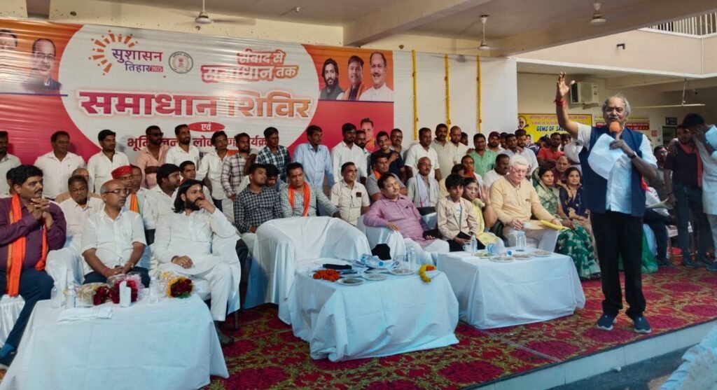 आरंग।आज आरंग में आयोजित समाधान शिविर में सांसद बृजमोहन अग्रवाल ने अफसरों को सख्त लहजे में समस्याओं के त्वरित समाधान के निर्देश दिए।उन्होंने समाधान शिविर में उपस्थित जनसमुदाय को संबोधित करते हुए कहा कि मेरी पहली प्राथमिकता जनता की भलाई और उनके विकास की दिशा में निरंतर प्रयास करना है। हम सुनिश्चित करेंगे कि हर नागरिक को समय पर और गुणवत्तापूर्ण सेवाएं मिलें। आज का यह आयोजन इसी प्रतिबद्धता का परिचायक है।यह समाधान शिविर और लोकार्पण कार्यक्रम यह संदेश देता है कि छत्तीसगढ़ में जनसेवा और विकास के कार्य लगातार हो रहे हैं। स्थानीय जनता की भागीदारी और प्रशासन के समर्पित प्रयासों से क्षेत्र का विकास तेजी से होगा। आज शुक्रवार को नगर पालिका परिषद आरंग के तत्वाधान में पीएम श्री शासकीय अरुंधती देवी उच्चतर माध्यमिक विद्यालय आरंग में समाधान शिविर का आयोजन हुआ इस अवसर पर मुख्य अतिथि सांसद लोकसभा रायपुर एवं पूर्व कैबिनेट मंत्री छत्तीसगढ़ शासन बृजमोहन अग्रवाल ने 181.62 लाख एवं 58.04 लाख का लोकार्पण एवं भूमि पूजन किया उन्होंने प्रत्येक विभाग की जानकारी लेते हुए कई मामलों में अफसरो को कड़े निर्देश दिए एवं कहा की अवैध शराब बिक्री बर्दाश्त नहीं किए जाएंगे एवं जल संकट के भी त्वरित समाधान के निर्देश दिए उन्होंने शासन की अनेक कार्य योजनाओं से लाभ उठाने की बात भी कह उन्होंने प्रधानमंत्री नरेंद्र मोदी एवं मुख्यमंत्री विष्णु देव साय के सुशासन का जिक्र करते हुए कहा कि सभी समस्याओं का समाधान अवश्य होगा। उन्होंने सेना के पराक्रम को स्मरण कर उनका नमन किया।