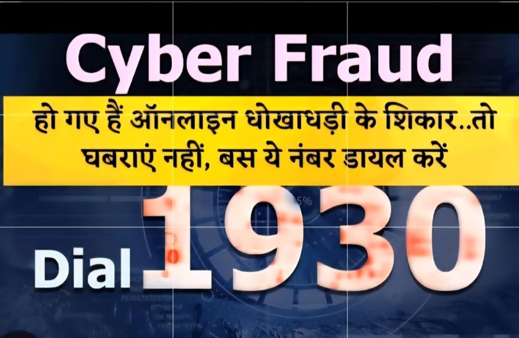 1930 भारत सरकार का राष्ट्रीय साइबर अपराध हेल्पलाइन नंबर है।इसे गृह मंत्रालय (Ministry of Home Affairs) और Indian Cyber Crime Coordination Centre (I4C) द्वारा संचालित किया जाता है।ऑनलाइन पैसे की ठगी (UPI, बैंक, कार्ड, वॉलेट आदि से फेक लोन ऐप या इन्वेस्टमेंट स्कीम से ठगी डिजिटल अरेस्ट या ऑनलाइन ब्लैकमेलिंग