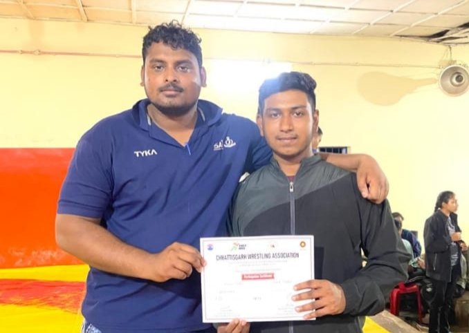 आरंग। भिलाई के सेक्टर-3 में आयोजित सीनियर कुश्ती प्रतियोगिता में ग्राम नारा निवासी युवा पहलवान आकाश चंद्राकर ने 125 किलोग्राम भार वर्ग में शानदार प्रदर्शन करते हुए स्वर्ण पदक जीता। अपने दमदार दांव-पेच और बेहतरीन प्रदर्शन के दम पर आकाश ने न केवल प्रतियोगिता में प्रथम स्थान प्राप्त किया, बल्कि आगामी राष्ट्रीय कुश्ती प्रतियोगिता, जो अहमदाबाद में आयोजित होगी, के लिए भी चयनित होकर क्षेत्र और राज्य का नाम रोशन किया है।गोल्ड जीत की खबर मिलते ही ग्राम नारा सहित पूरे क्षेत्र में खुशी की लहर दौड़ गई। ग्रामीणों एवं खेल प्रेमियों ने आकाश को शुभकामनाएँ दीं। सभी ने उनके उज्ज्वल भविष्य की कामना की।कोच चिरंजीवी साहू ने इस उपलब्धि पर हर्ष व्यक्त करते हुए कहा आकाश चंद्राकर नियमित रूप से राष्ट्रीय स्तर की प्रतियोगिताओं में भाग लेते रहते हैं। उनका यह प्रदर्शन न केवल उनके परिश्रम का परिणाम है, बल्कि हमारे छत्तीसगढ़ राज्य के लिए गर्व की बात भी है।आकाश ने अपनी सफलता का श्रेय अपने कोच, परिवार एवं ग्रामवासियों के सहयोग को दिया। उन्होंने कहा कि राष्ट्रीय प्रतियोगिता में राज्य का नाम ऊँचा करने का पूरा प्रयास करेंगे।