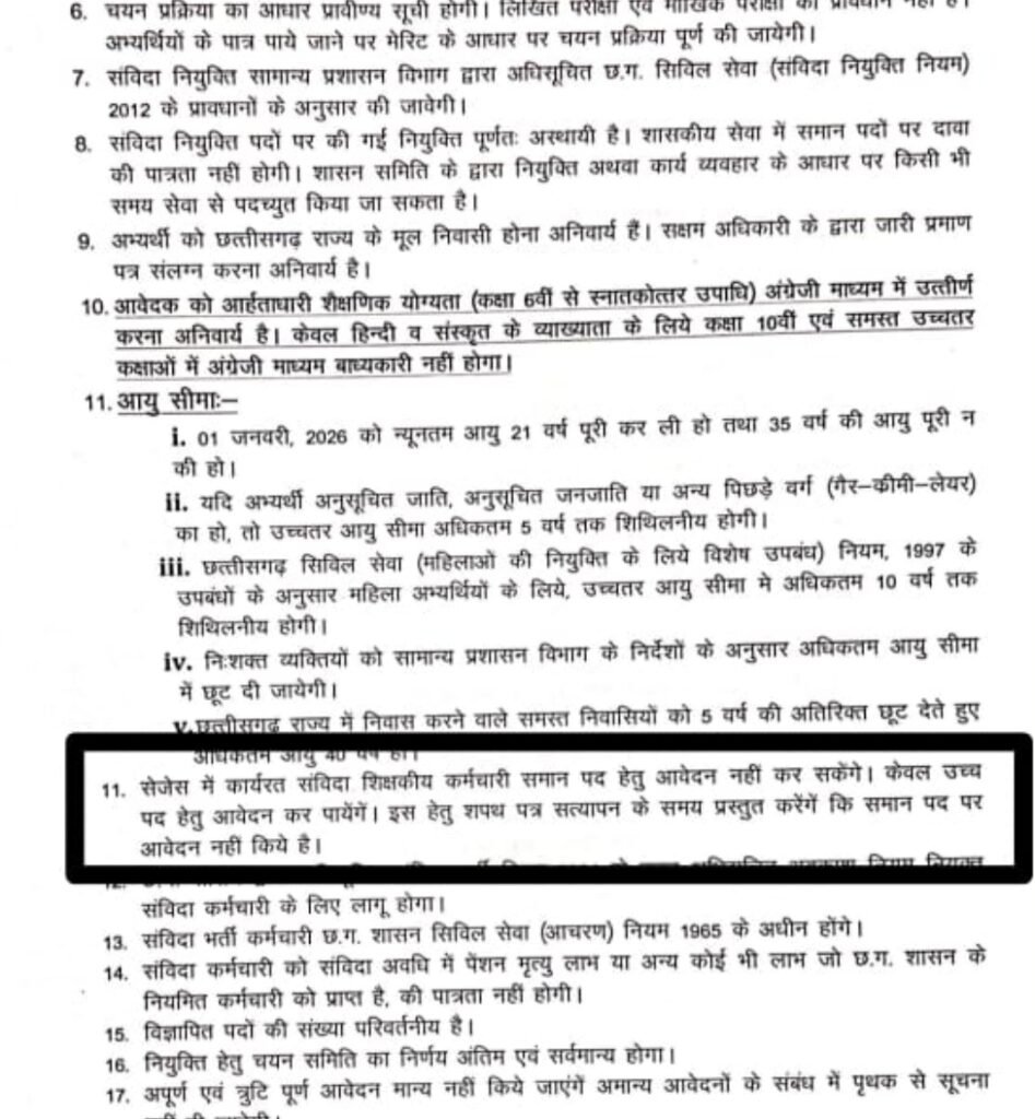 स्वामी आत्मानन्द स्कुल-संविदा शिक्षकों पर आवेदन प्रतिबंध से नाराजगी-नियम में संशोधन की उठी मांग-151 पदों के लिए मंगाए गए है आवेदन…