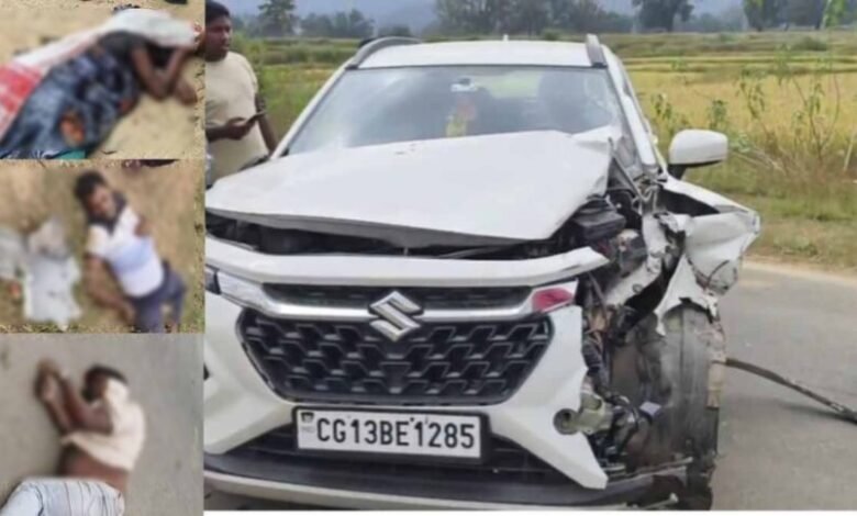 मिली जानकारी के अनुसार, कापू थाना क्षेत्र में धरमजयगढ़ कापू मार्ग चाल्हा मोड़ पर तेज रफ्तार कार पहले बाइक को टक्कर मारी, फिर सड़क पर पैदल चल रही ग्रामीण महिला को रौंदा। हादसे में तीनों की मौत हो गई। वहीं कार चालक मौके से भाग निकला, जिसकी तलाश में पुलिस जुटी हुई है।