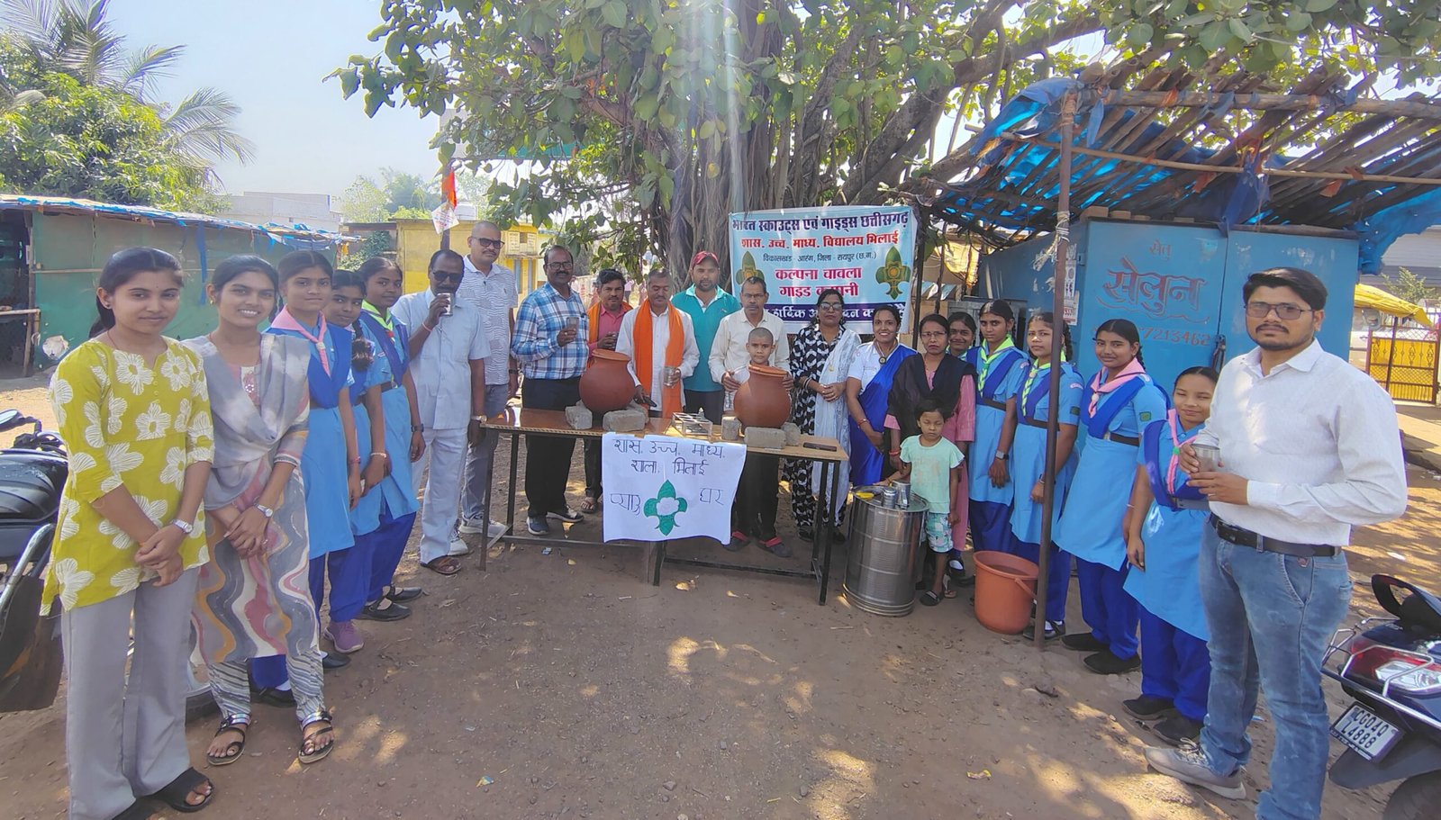 आरंग।भारत स्काउट्स एवं गाइड्स जिला संघ रायपुर के जिला अध्यक्ष जी स्वामी, जिला आयुक्त एवं जिला शिक्षा अधिकारी हिमांशु भारतीय के निर्देशानुसार तथा जिला सहायक आयुक्त एवं विकासखंड शिक्षा अधिकारी दिनेश शर्मा के मार्गदर्शन में , और विनीता वर्मा व्याख्याता के नेतृत्व में भीषण गर्मी को देखते हुए अपने आदर्श वाक्य सेवा को चरितार्थ करते हुए शासकीय उच्चतर माध्यमिक विद्यालय भिलाई द्वारा भिलाई चौक में स्काउट गाइड के बच्चों तोषनी साहू, रागिनी यादव, भावना निर्मलकर, लोकेशवरी साहू, लक्षिता धीवर, मोनालिका चंद्राकर, पूर्वांशी चंद्राकर, पारुलता साहू, यमन साहू, लोकेशवरी साहू, लीना साहू मोरजध्वज साहू, विद्याभूषण साहू द्वारा शरबत पानी वितरण कर प्याऊ घर का शुभारंभ किया ।प्याऊ घर का शुभारंभ भिलाई में उपसरपंच रुपकुमार साहू, रुपेश निर्मलकर सांसद प्रतिनिधि, रामेश्वर साहू सदस्य शा. प्र समिति, तुलस राम साहू शिक्षाविद्ध के द्वारा किया गया। इस पुनीत कार्य के लिए जिला सचिव मृत्युंजय शुक्ला ने शुभकामनाएं दिए है।इस कार्यकम के अवसर पर विद्यालय के प्राचार्य लखन लाल चंद्राकर ,व्याख्याता चंदु लाल साहू, प्रधान पाठक सुश्री डॉर्थी तांडी, जीतेन्द्र शुक्ला संकुल समन्वयक, नीरज साहू, लेखिनी निषाद, संकल्प, वंशिका, उमाशंकर, दुर्गेश आदि की उपस्थिति रही।